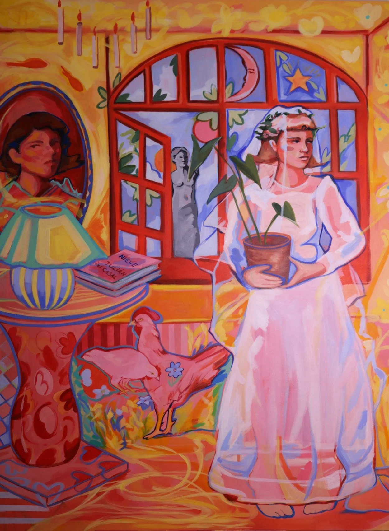 “The work I began producing in 2021 has been a dive within. I wanted to counteract the erasure of Cuban female artists throughout history and bring a more realistic perspective on our identity in general. I’ve come to find media representations of us are limited and don’t quite capture the tremendous wit and bravery that the women in my life have taught me. When my niece grows up I don’t want her to have to subscribe to stereotypes of herself. I want my body of work to someday be the mirror I would’ve liked to have growing up. When you research the paintings and lives of Juana Borrero, of Concha Ferrant, the writings of Luisa Pérez de Zambrana and many others, there truly isn’t as much information as there should be. There’s a complexity and depth of character there that hasn’t been explored enough and that’s what I try to do through my work. All I’ve ever needed in life are my mother’s strong arms, and they are what I return to every single time I reach for a paintbrush.”